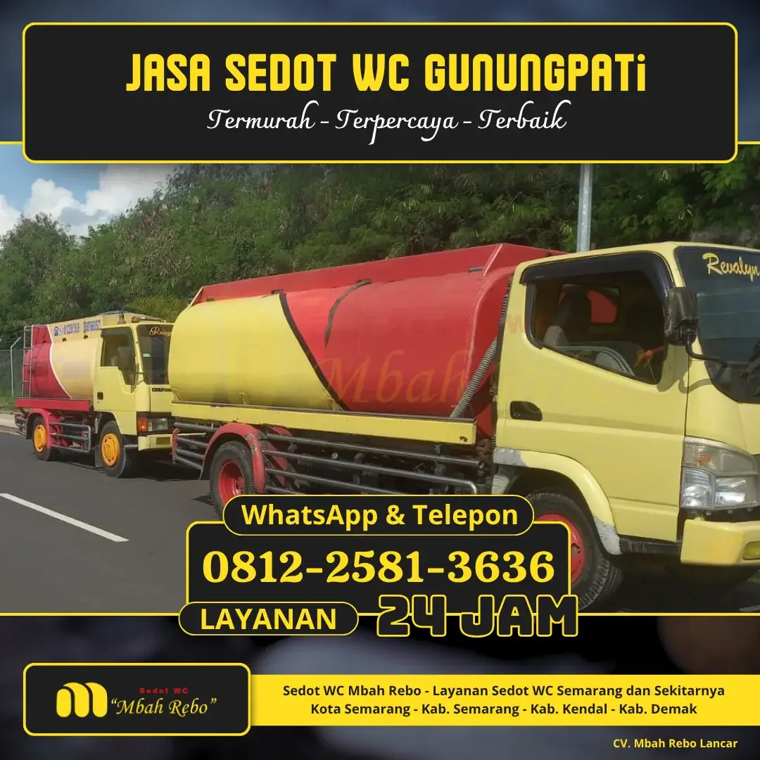 Sedot WC Gunungpati kini semakin mudah dan cepat bersama Sedot WC Mbah Rebo, penyedia jasa profesional yang melayani wilayah Gunungpati dan sekitarnya. Dengan armada modern, tenaga ahli berpengalaman, serta sistem kerja yang bersih dan transparan, CV. Mbah Rebo Lancar siap menangani segala kebutuhan sedot WC, perawatan septictank, hingga perbaikan saluran mampet. Kami hadir dengan tarif jujur tanpa perantara dan pelayanan 24 jam penuh agar masyarakat Gunungpati mendapatkan solusi cepat dan terpercaya setiap saat.