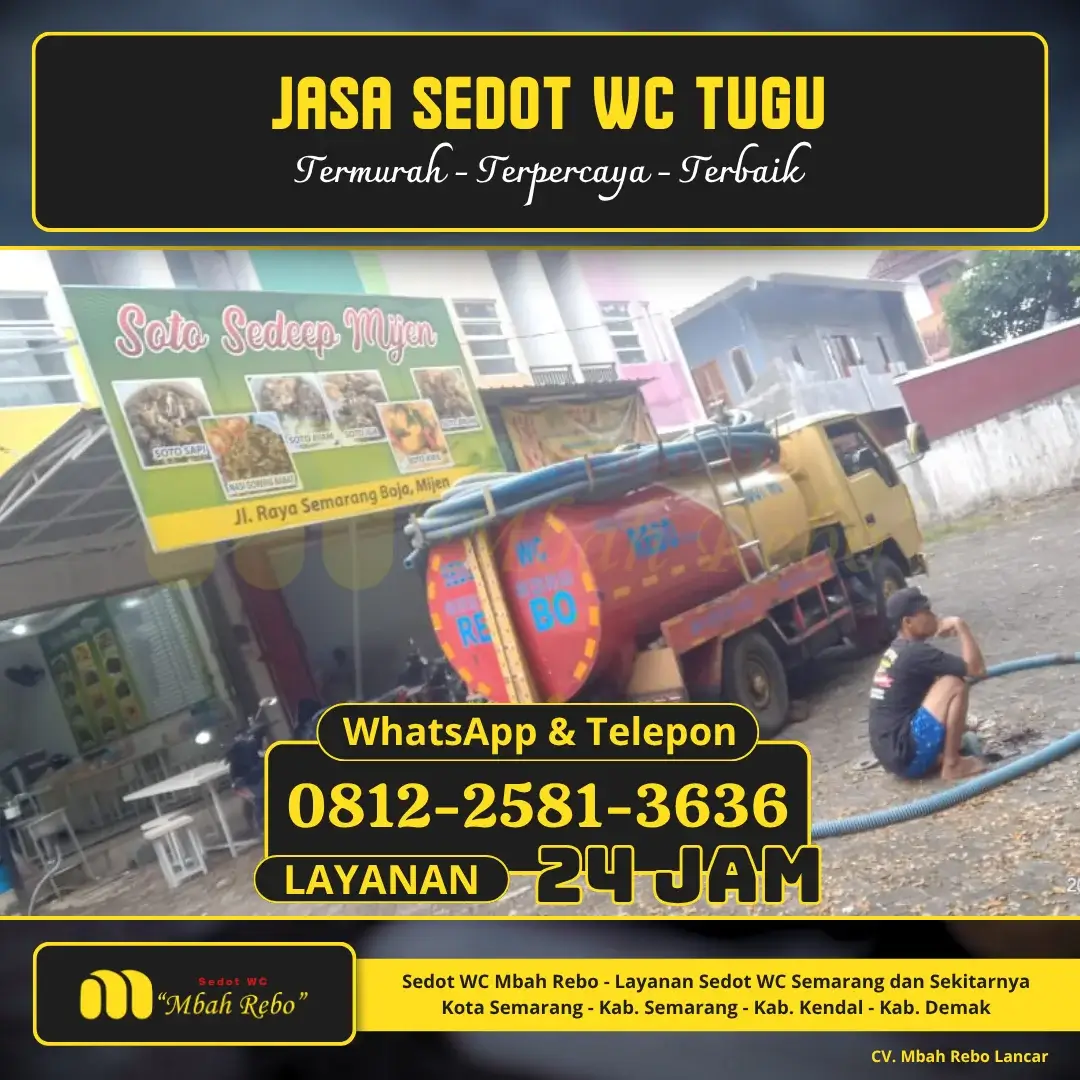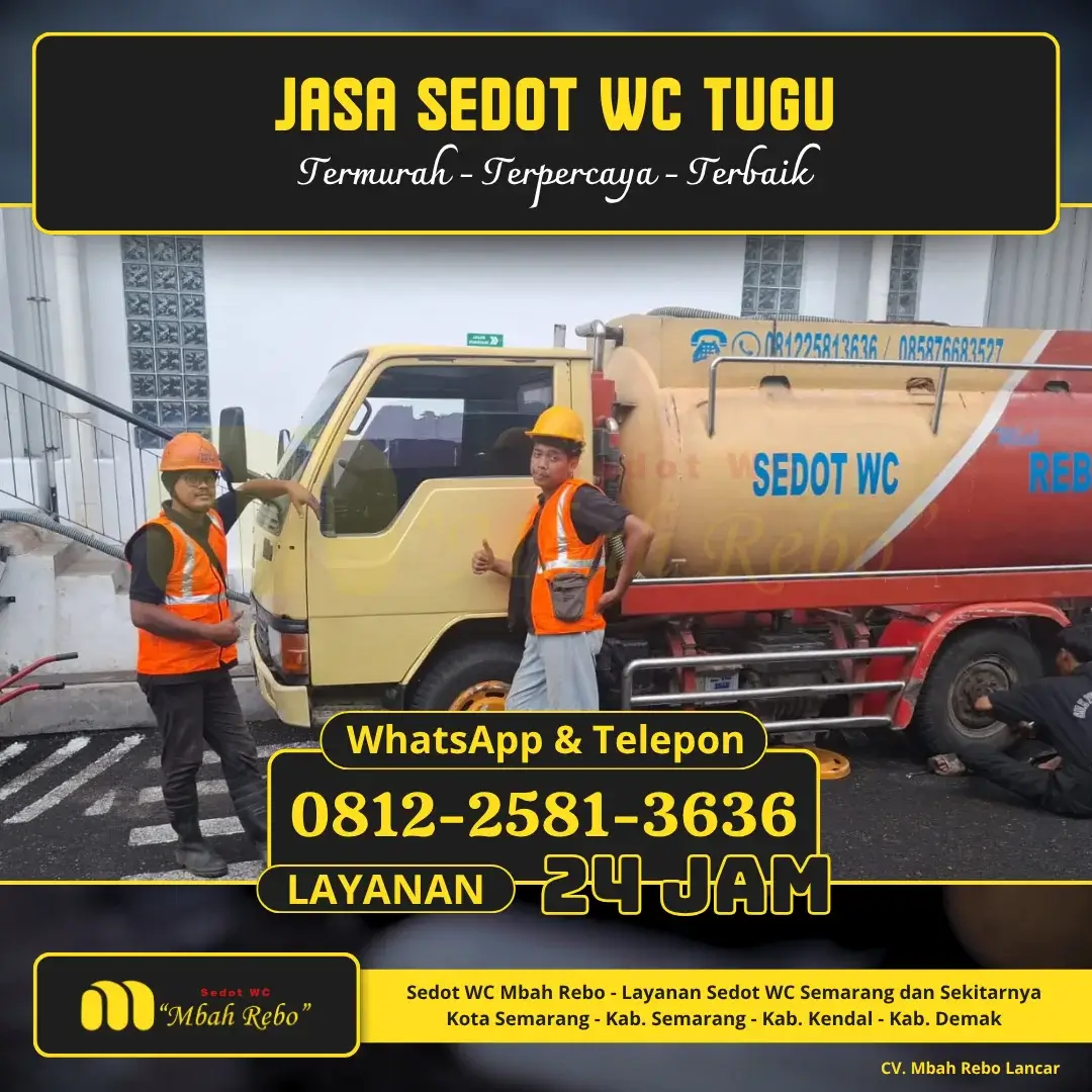 Halaman Sedot WC Tugu menjadi satu bagian dari Sedot WC Semarang dari CV. Mbah Rebo Lancar yang dibuat eksklusif untuk warga kecamatan Tugu, Kota Semarang. Jika Anda ingin mengetahui lebih lanjut ketersediaan area layanan kami, check disini: Area Layanan Kami.